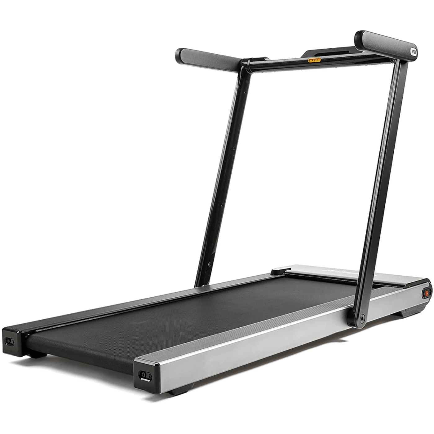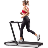 This indoor treadmill has two sets of transportation wheels that allow you to move it forward, backward, left, and right when it’s folded flat.