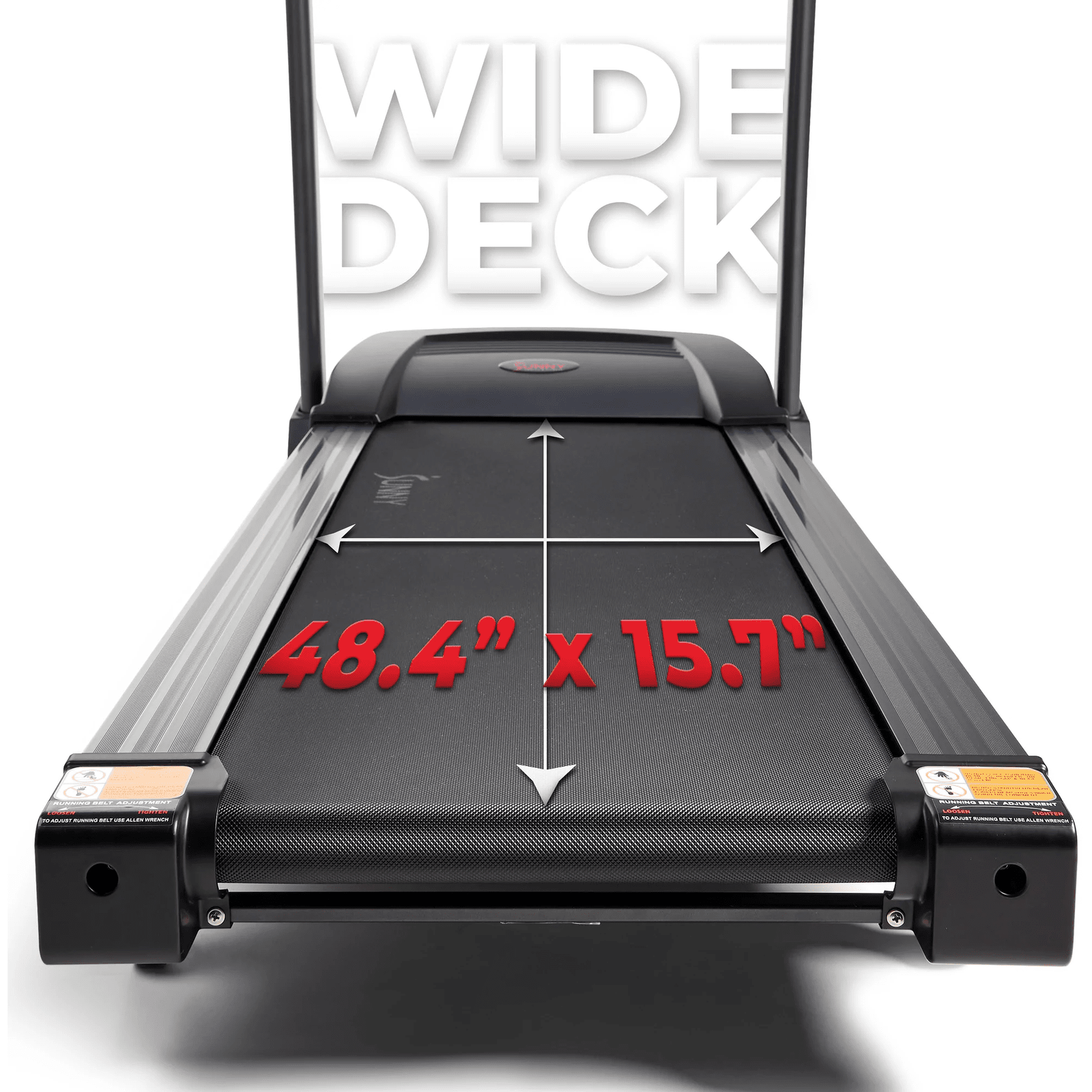 Stay active, get sweaty and have fun working out with the Sunny health and fitness SF-T7705 Treadmill with auto-recline built with digital technology and engineered for speed and stability. Experience 15 levels of automatic recline and speed choices up to 9 mph for a customized regimen that best fits your unique fitness goals.