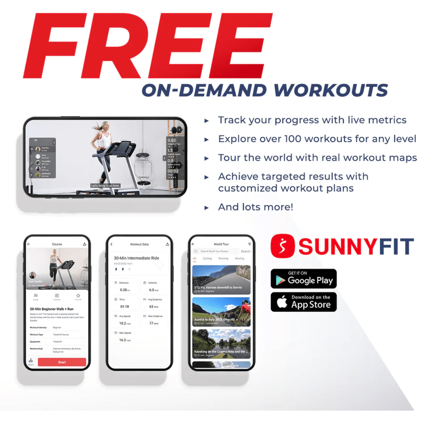 Place your tablet, phone, or other mobile device to stay connected. Follow along online with our Sunny Health & Fitness trainers for certified fitness tips, advice, and lessons.
