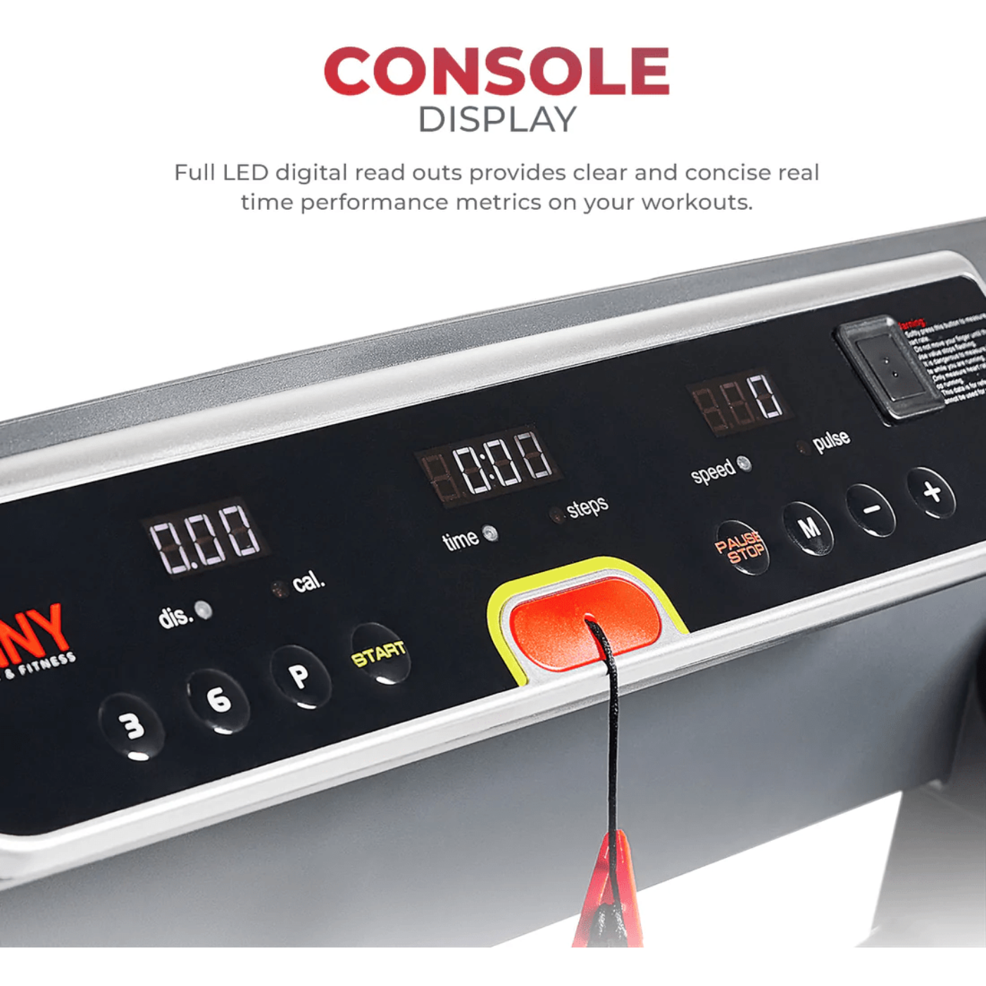 Start a low-impact cardiovascular training routine with the SF-E3875 Programmable Elliptical Trainer by Sunny Health & Fitness. Stride confidently when you step onto the oversized, textured footplates that are designed for optimal grip and balance. Crafted for long-lasting workouts, the durable steel frame on the elliptical cross trainer supports a maximum user weight of 300 lb!