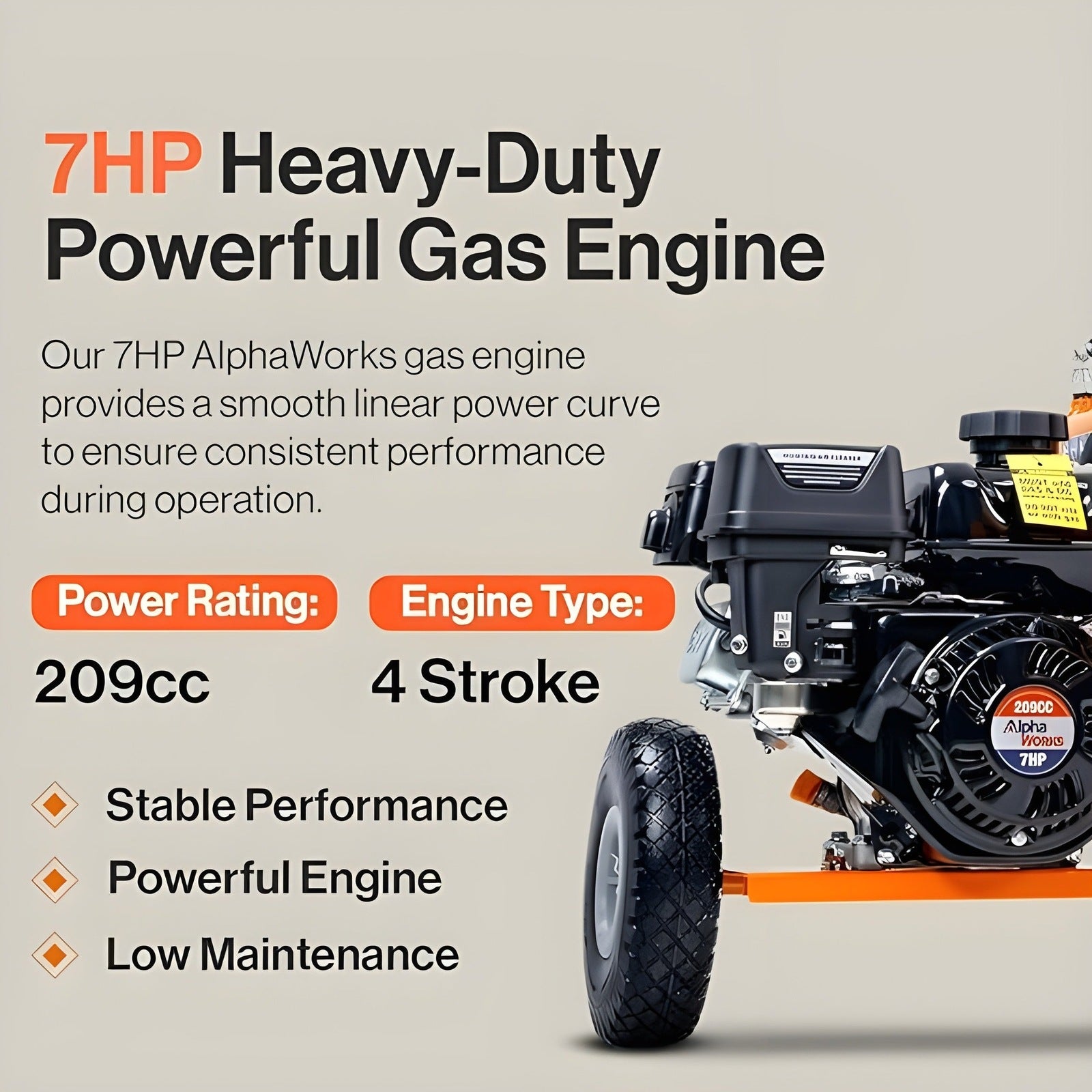 EFFICIENT - Our 7HP Gas Engine provides a smooth linear power curve to help avoid clunky performance during operation. A constant splitting force allows the wedge to smoothly slice through your wood pile with confidence; Effortlessly complete large splitting jobs with only a 7.5-second cycle time reset in-between log splits