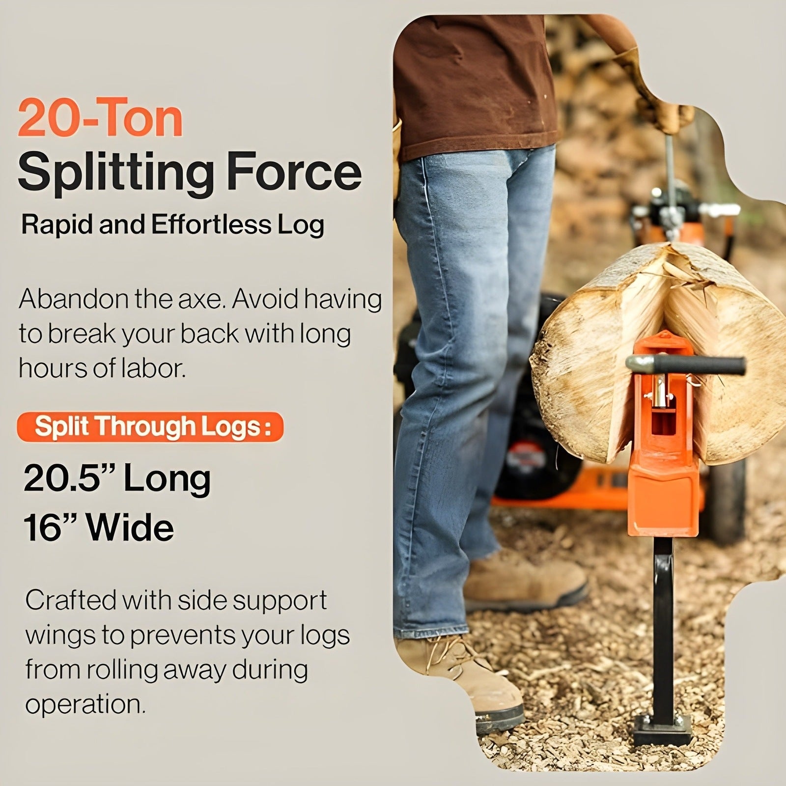 A: This log splitter has a 20-ton splitting capacity, making it suitable for splitting large logs and firewood quickly and efficiently.
