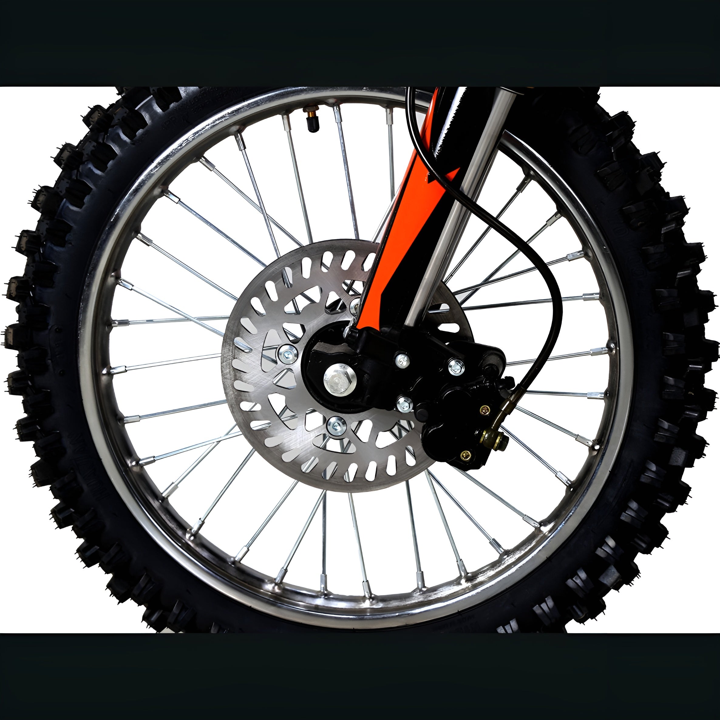 The DB27 is perfect for riders looking to get on the race track for the first time, and not looking to break the bank. A 125cc engine offers a great degree of control, responsive acceleration, while front and rear hydraulic brakes ensure that the dirt bike will stop when you want it to, and can navigate sharp turns with ease and accuracy. The DB27 also has a clutch.
