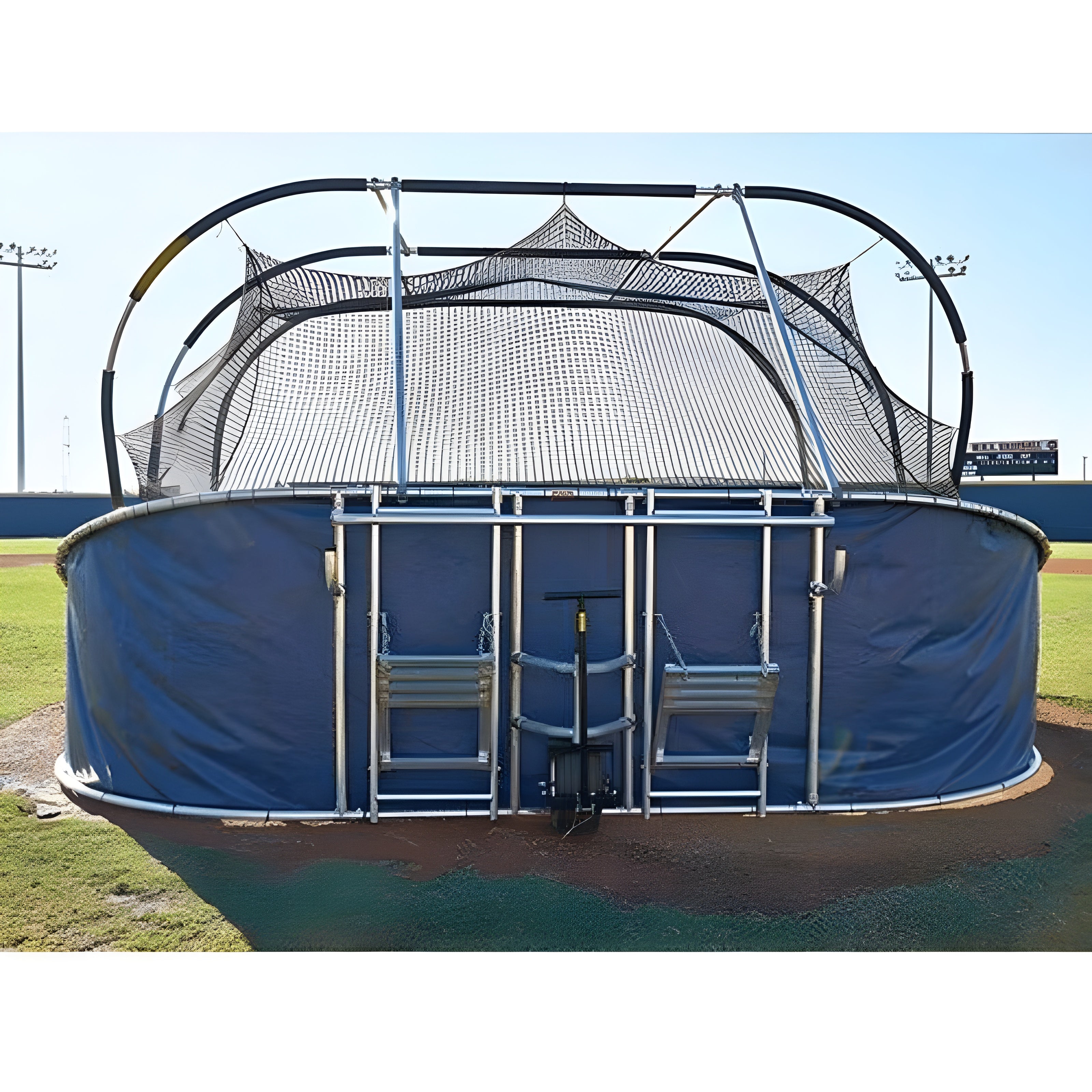 Players can take confident practice swings in this BIG BUBBA Elite Batting Cage, which keeps foul balls and missed pitches contained for player safety and easy cleanup. Dual observation platforms let coaches give direction and support to the batter while keeping them protected behind sturdy EHT netting. Foul balls are absorbed by ricochet padding and an extra baffle net, minimizing the chance of balls bouncing back toward a player. Portability and storage are made easy by the pneumatic tires and lockable dolly lift system, which let you quickly set up and break down the cage for training sessions.