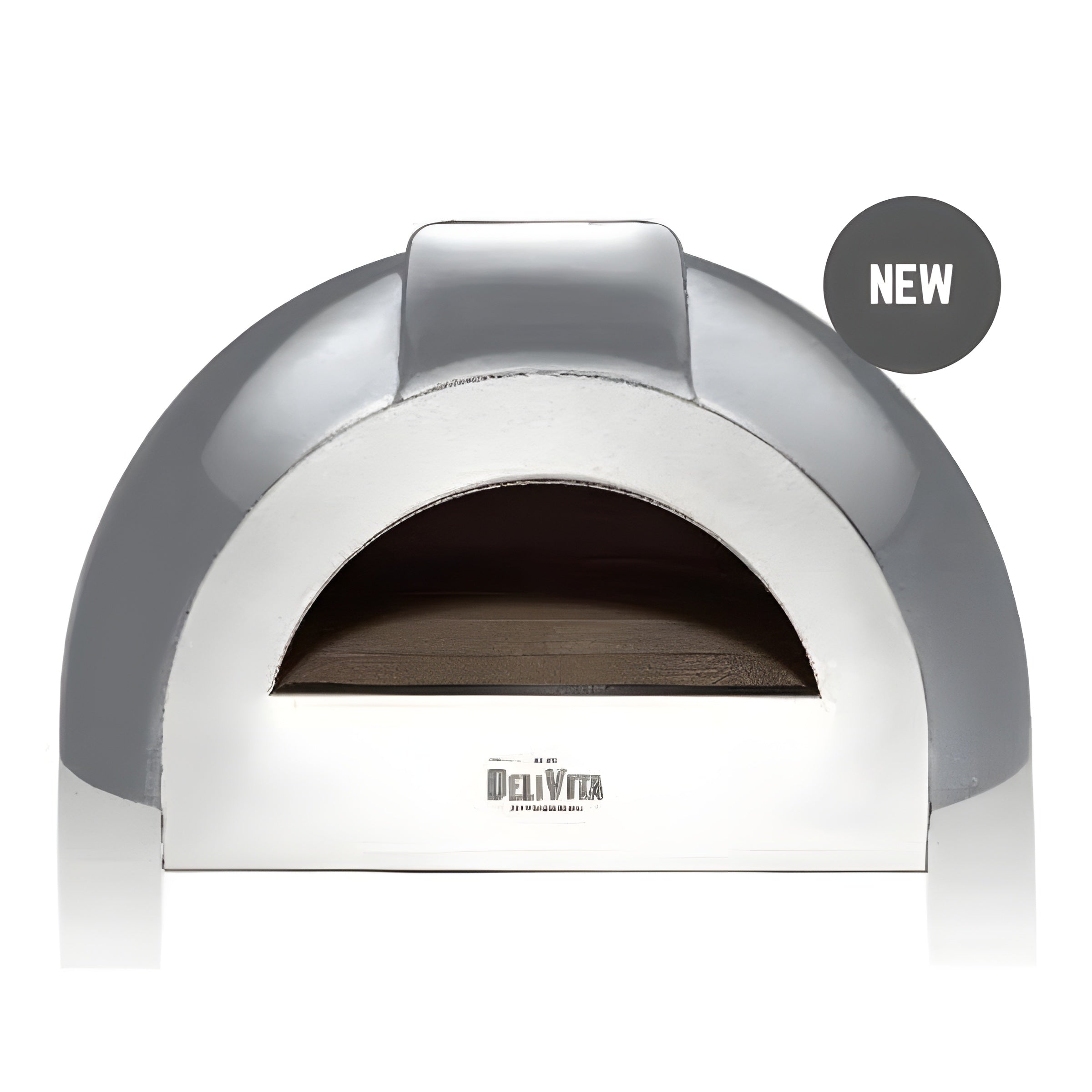 The DeliVita has a modern look complemented by a traditional clay lining. This unique pizza oven does not need a chimney to vent the smoke. Using the right wood in the back of the oven, the fire rolls over your food and any smoke drifts out through the top of the oven door.