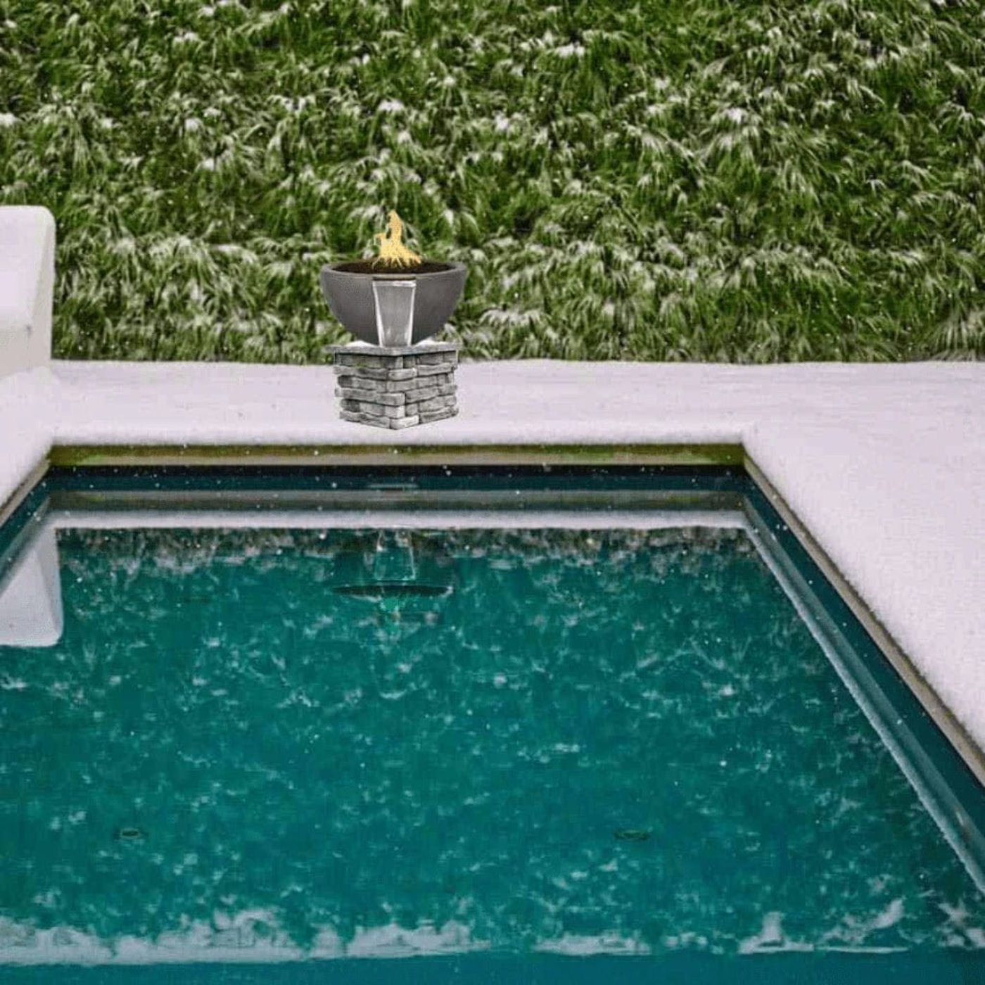 The Outdoor Plus OPT-LUNFW Luna Concrete Fire and Water Bowl (30-Inch) is a sleek and modern outdoor feature that seamlessly combines the beauty of a fire bowl and water fountain, creating an elegant and functional centerpiece for your outdoor space.