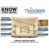 The TheraSauna TS7754 4 person's lavish design and best-in-class performance provides the ultimate relaxing and therapeutic experience on earth. Whether you are recovering after an intense workout or recovering from an injury, detoxifying, or just winding down after a long day of work, this 4 person TheraSauna can be custom-tailored to fit your lifestyle to supercharge your daily life. Experience best in class infrared therapy with the ThereaSaunaTS7754 today!