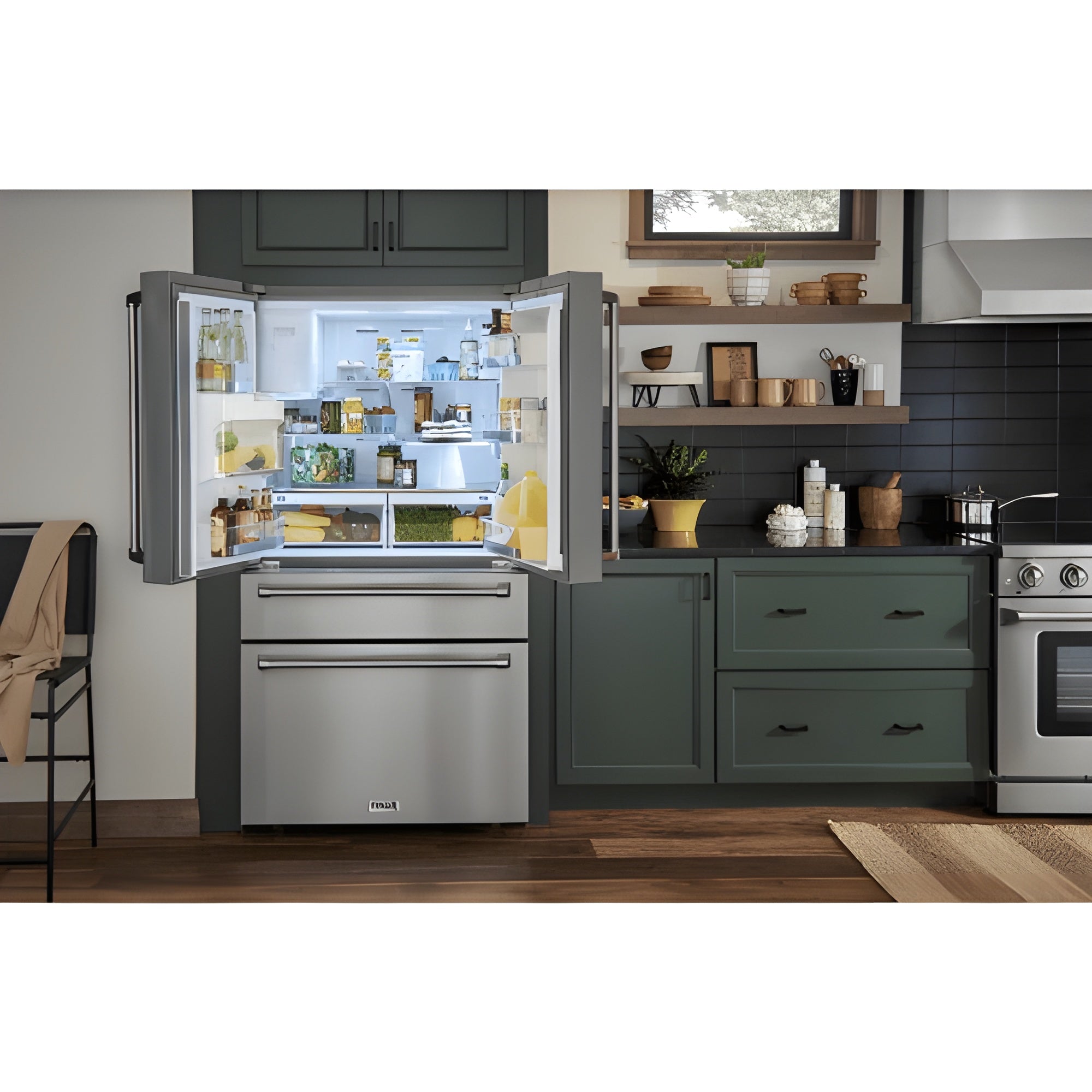 See Thor Kitchen 36 In. Counter Depth Refrigerator in Stainless Steel with Water Dispenser, Ice Maker - TRF3601FD features below: