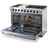 THOR Kitchen offers the power and performance of a premium professional appliance at a practical price. The THOR Kitchen 48" Inch Gas Range, LRG4807U, is a stainless steel machine that is designed with professional features and functionality. With powerful burners, continuous grates and a commercial convection fan, this range takes everything from prime rib to snickerdoodles to the next level. Oh, and did we mention the 15,000 BTU griddle?