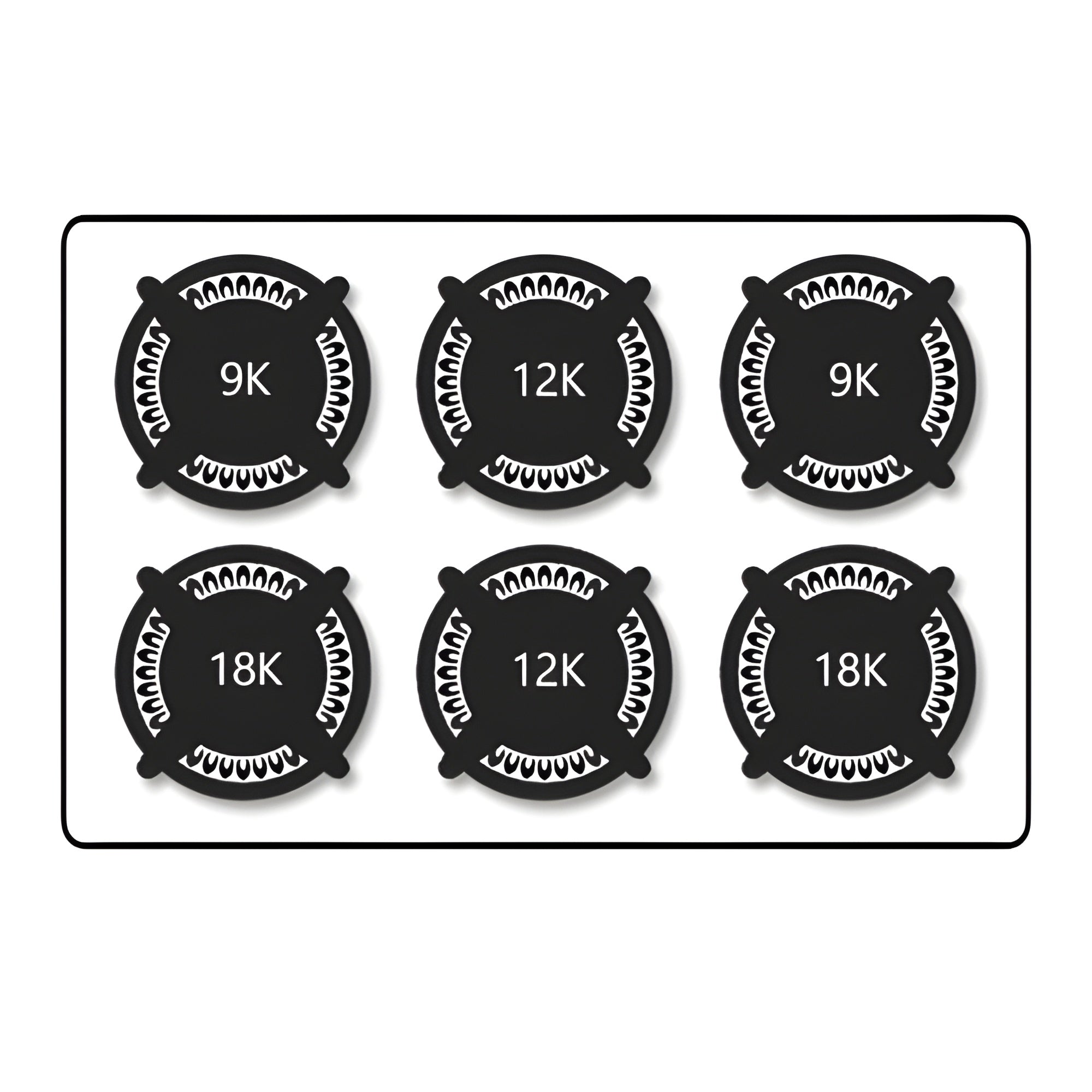 | BTU Ratings: | Front Right (Dual) 18,000 BTU Front Left (Dual) 18,000 BTU Front Middle (Single) 12,000 BTU Rear Right (Single) 9,000 BTU Rear Left (Single) 9,000 BTU Rear Middle (Single) 12,000 BTU Tube broil burner 10,500 BTU U-shape burner 18,500 BTU |