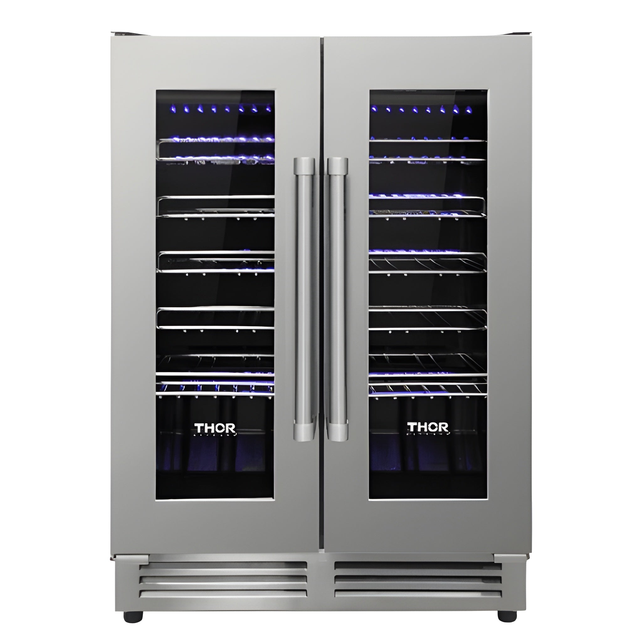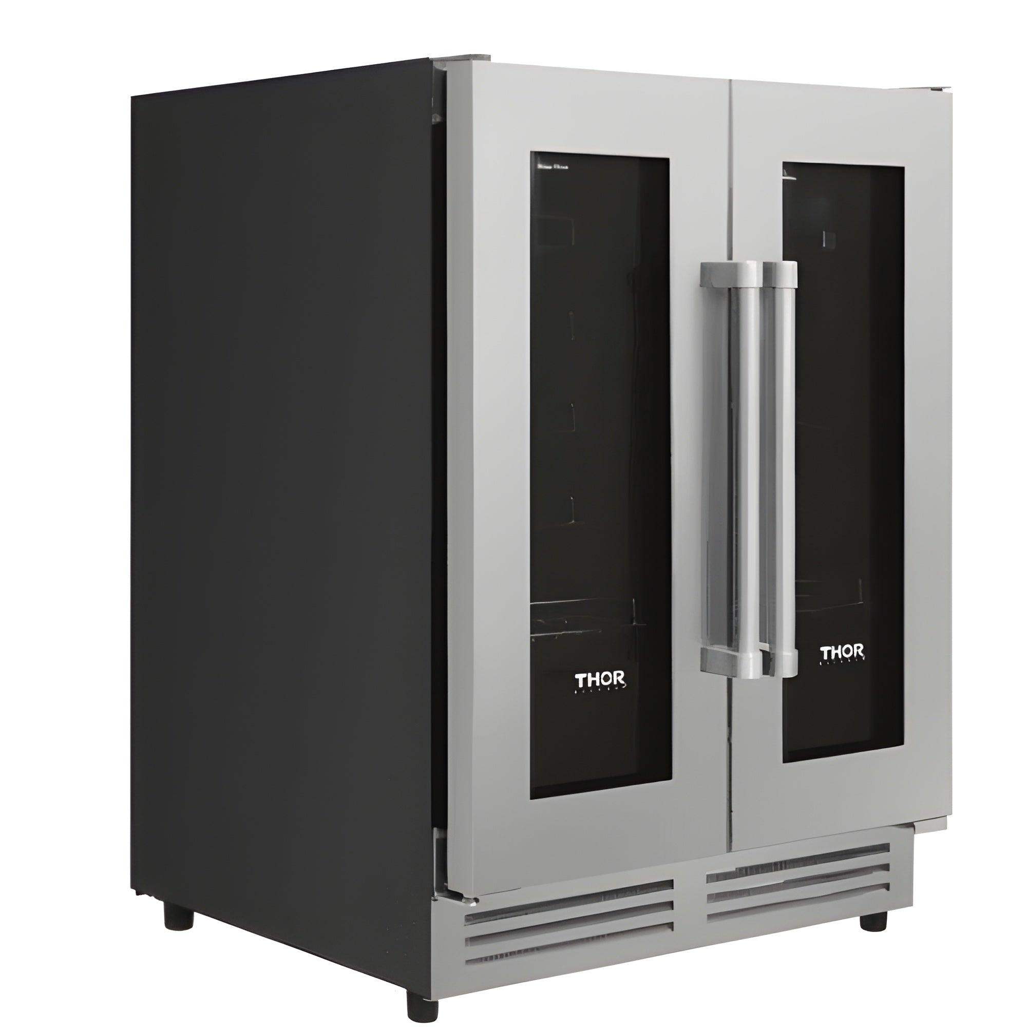 The Thor Appliance Package - AP-LRG4087U-4 offers a comprehensive set of high-end kitchen appliances that combine functionality, durability, and style. With a large gas range, efficient range hood, spacious refrigerator, eco-friendly dishwasher, and elegant wine cooler, this package is perfect for upgrading your kitchen with premium appliances