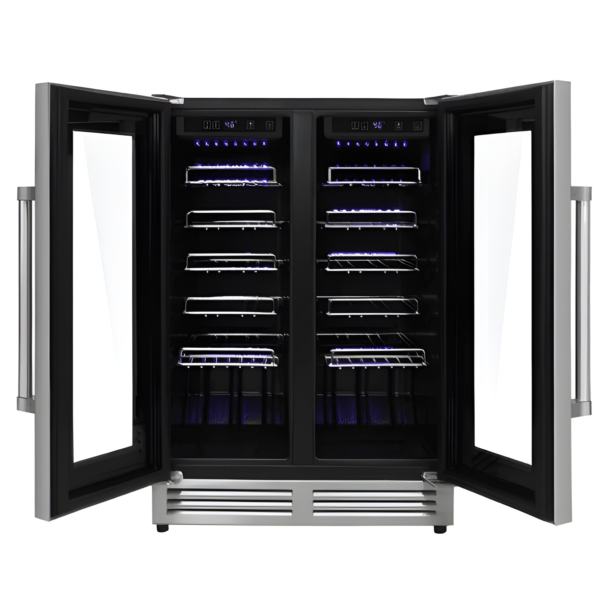This beautifully designed 24 Inch Dual Zone French Door Wine Cooler features two temperature-controlled zones that help preserve the flavor and integrity of individual wines. There’s a special zone for whites and a separate zone for reds. The 42 wine bottle capacity can easily fit a full selection of wines.