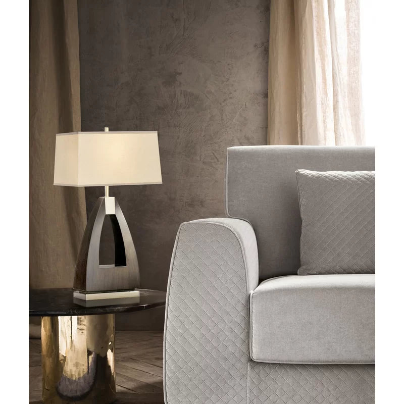 Elevate the style of your living room or bedroom with the Trina Table Lamp. This sophisticated modern piece features a pecan and brushed nickel finish, complemented by a tan linen shade. Crafted with a blend of wood and steel, this charming NOVA of California table lamp adds both functionality and allure to your space with its user-friendly 3-way rotary switch. Upgrade your space with the Trina Table Lamp’s contemporary elegance and practicality, providing a tasteful and functional lighting solution. * Timeless mid-century modern iconic style designed by Jim McDonald. * Pecan and brushed nickel finish for a stylish touch. * Tan linen shade for an elegant look. * Crafted with wood and steel for durability. * Equipped with an easy-to-use 3-way rotary switch. * Trina is also available in a coordinating Pearson, pear-shaped table lamp version. * Energy-efficient LED compatible. * Smart switch compatible – effortlessly sync with Amazon Echo, Google Assistant, and Apple Home for easy & automated control. * Contract grade: high quality materials, quality workmanship, built to last a lifetime & designed in Venice Beach, California. * NOVA of California is the oldest light company in North America and has been making original contemporary designs for 100 years. * Sustainability statement: We are committed to minimizing the unwanted impact our business has on the environment. We care for our planet. Nova of California offeres a variety of high quality lighting designs to choose from. Explore the entire collection to find the perfect piece for your home.