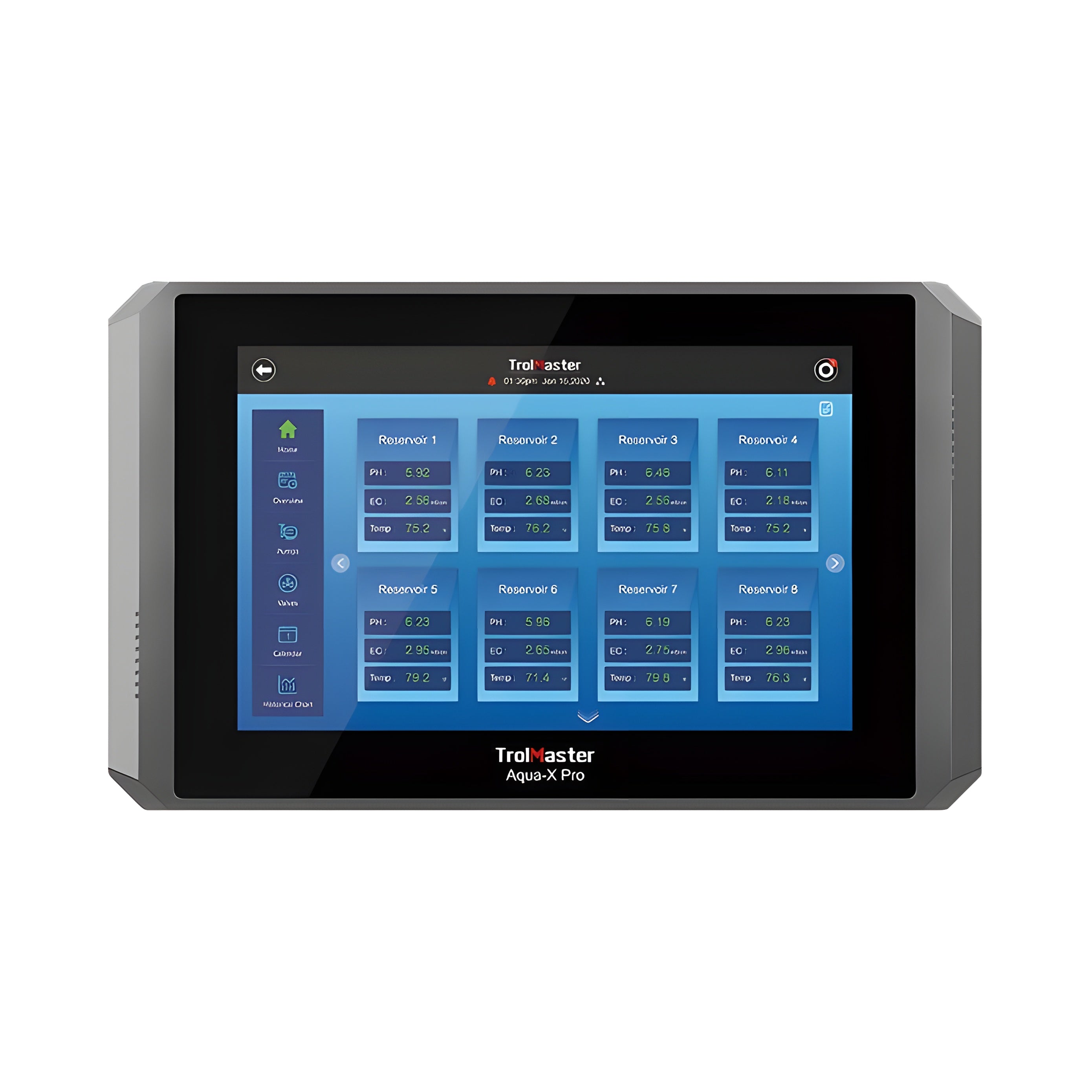 The NFS-2 controller from TrolMaster is one of the most advanced irrigation controllers available today. The NFS-2 is a multi-functional controller which can control multiple irrigation solenoids and pumps. The NFS-2 can also monitor multiple water sensors that can measure pH, EC / PPM, temperature and waters content sensor. There is also a new optional DFW-1 flow-meter that serves multiple functions. Each of the solenoids and pumps can be "linked" to work together so that multiple grow areas can be controlled by a single NFS-2. When combined with the optional AMP-3, WCS-1 and WCS-2 sensors and the new DFW-1 flow-meter, the NFS-2 allows the user to monitor up to 50 sensors and receive mobile notifications if a problem is detected by the system. The NFS-2 was created to allow users to customize their irrigation cycle and be able to control the irrigation events by using either the DFM-1 digital flow-meter, WCS-1 or WCS-2 moisture content sensors or by simple timers. Each device being controlled by the NFS-2 can conceivably have an unlimited number of irrigation "events" each 24 hour day.