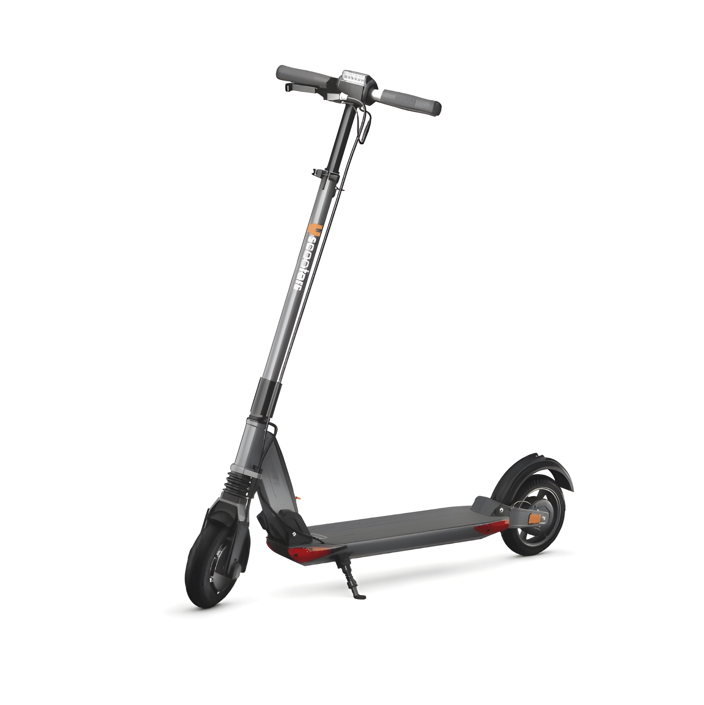 This e-scooter has a unique regenerative braking system which helps charge the scooter’s battery when the front magnetic brakes are applied.
