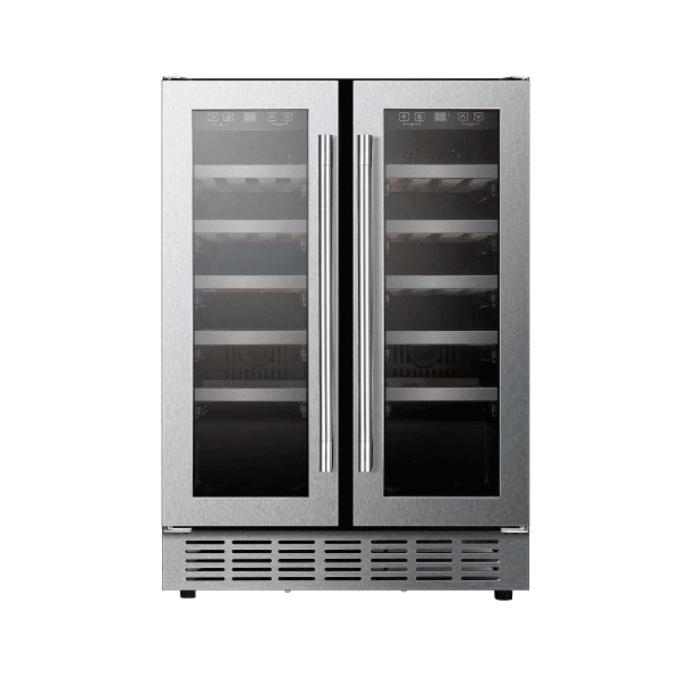 A: It is a premium wine cooler designed with a side-by-side layout, offering efficient storage for up to 40 bottles of wine in a sleek 24" unit.