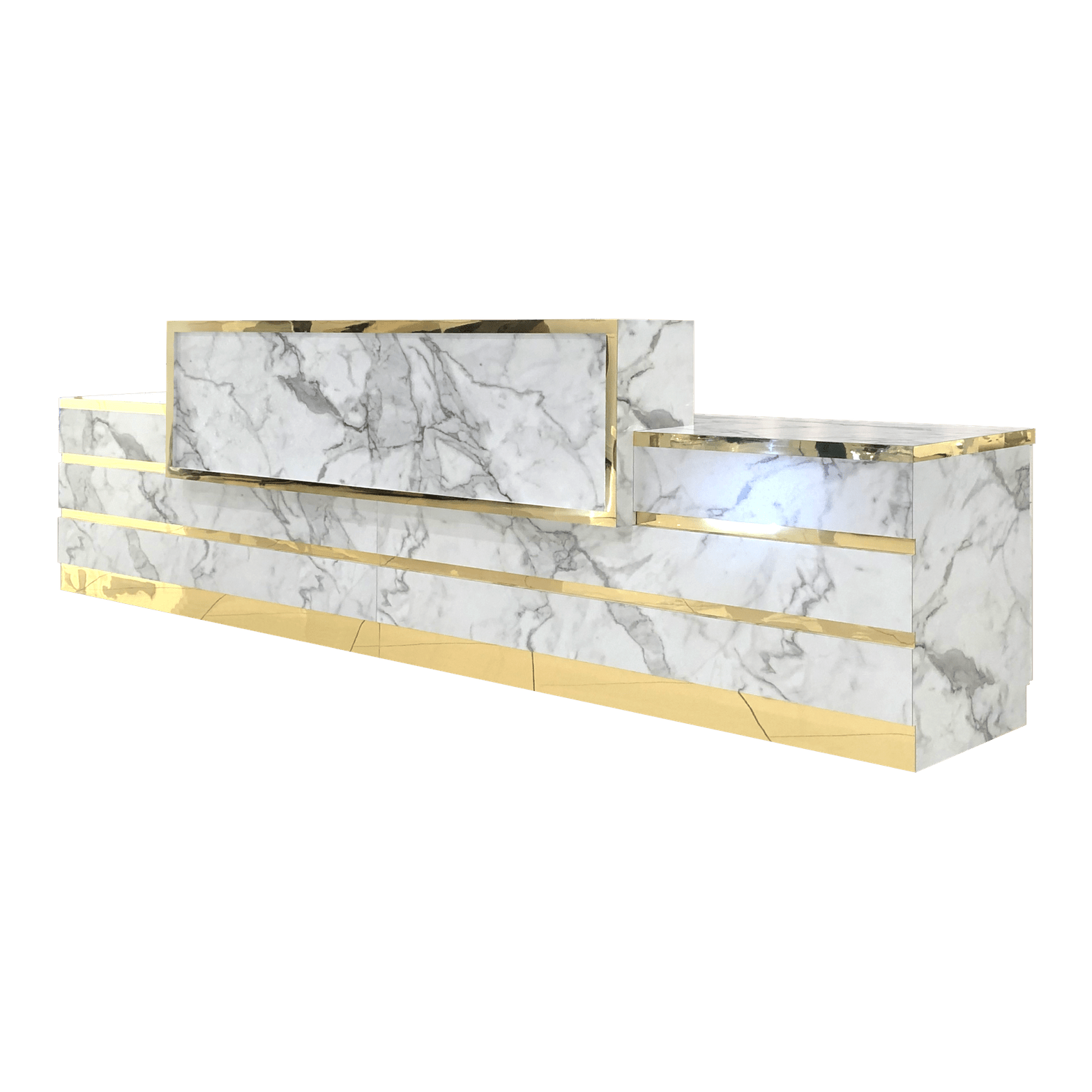 A reception desk is the first thing clients see in your salon, and it deserves to make a great first impression. Introducing the Whale Spa Gold and Marble Reception Desk Straight, a chic custom-designed masterpiece that combines marble finishes with luxurious gold accents. This reception desk is the epitome of luxury and is sure to be an eye-catching conversation starter in any salon setting.