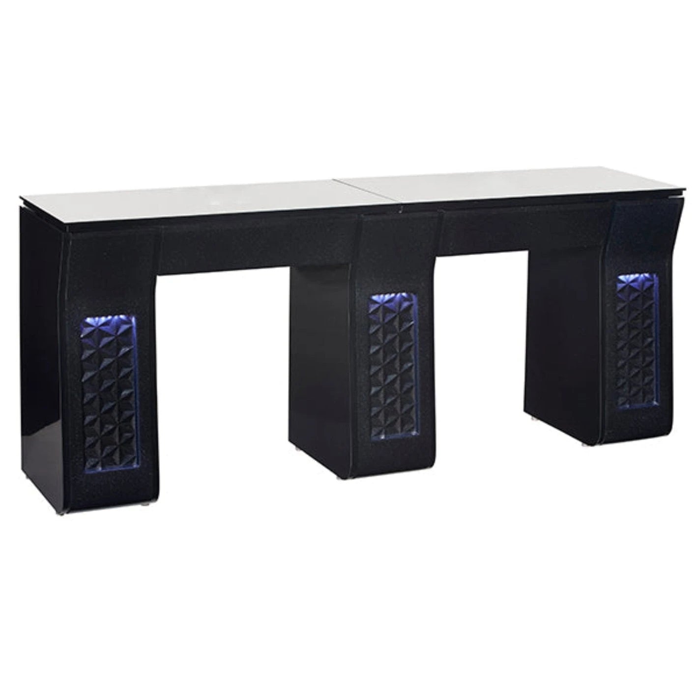 Diamond ShadowTexture™ Design: Admire the intricate detail of the Diamond ShadowTexture™, which adds a luxurious touch to the manicure table's glass top surface. The play of light and shadow enhances the ambiance of your salon, setting it apart with its unique aesthetic.