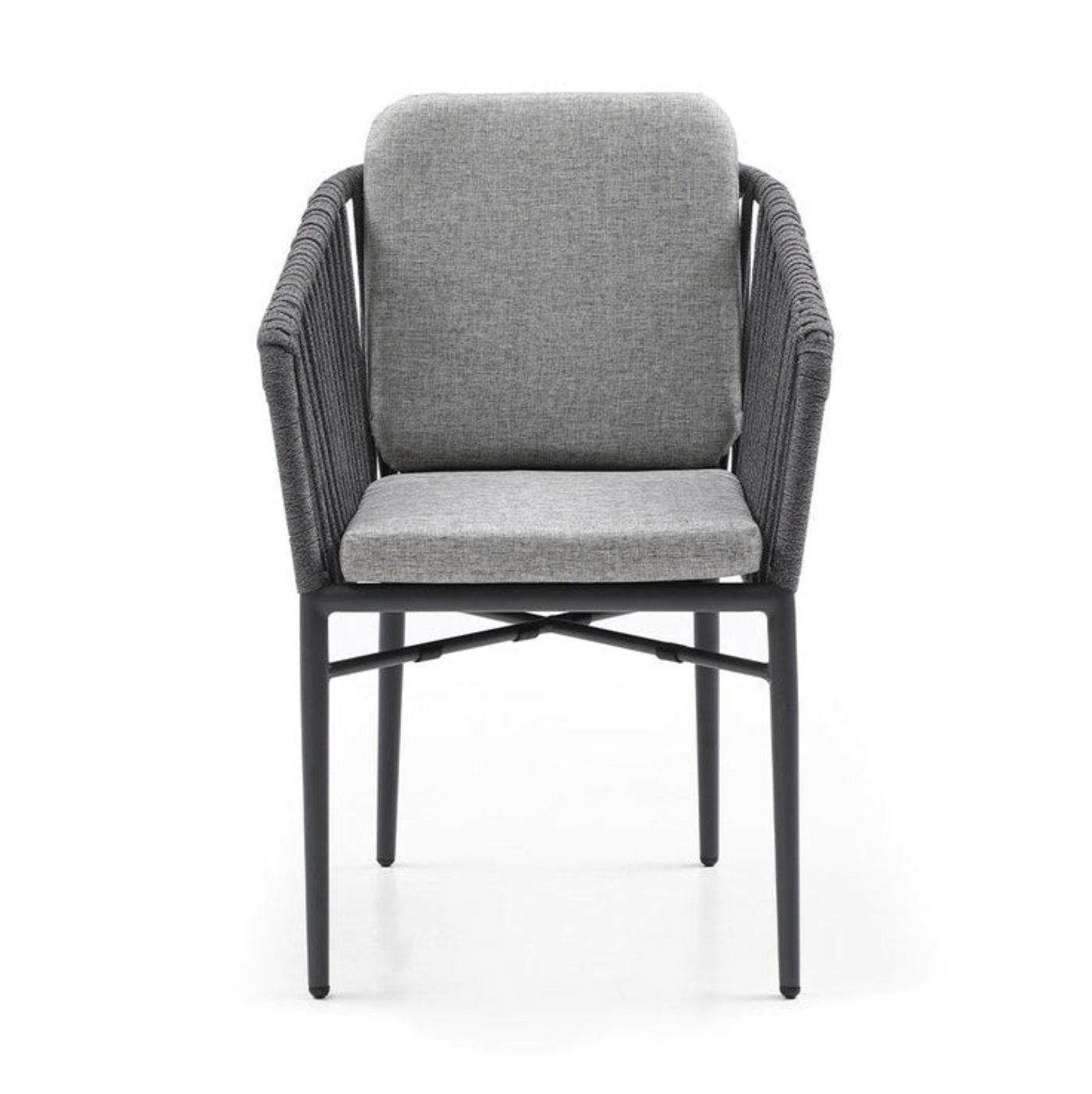 Perfectly matched with Lynn's dining table, this armchair brings sophistication and comfort to your patio or balcony. With dimensions of W22” D21” H32” and a seat height of 17", it offers ample support and style. The chair arrives fully assembled in a compact carton size of W23" D36" H39" and weighs 56 lbs, making it easy to integrate into your outdoor dining setup. Enhance your alfresco dining with the Lynn Outdoor Dining Armchair, a blend of contemporary design and ultimate comfort.