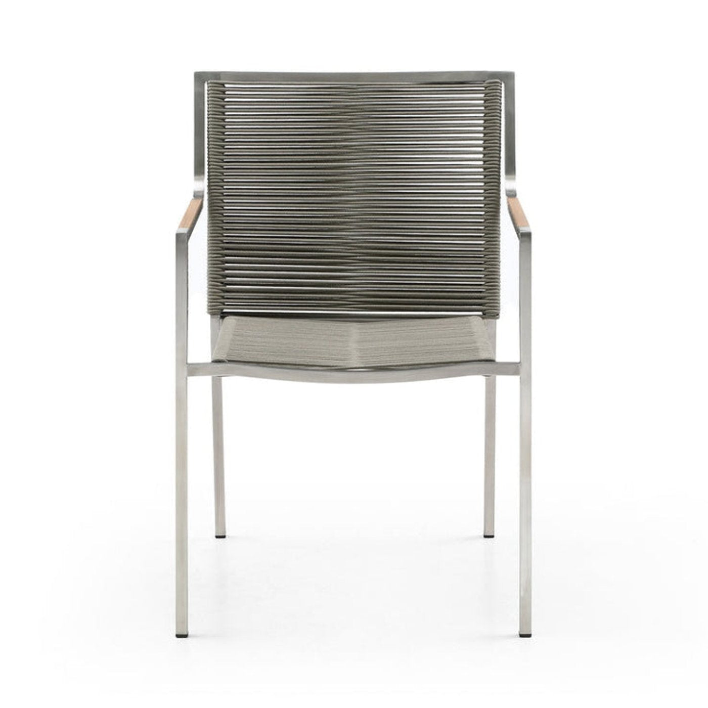 Elevate your outdoor dining experience with the Whiteline Modern Living Rhea Outdoor Dining Chair - DC1834-LBRN. This exquisite armchair combines striking aesthetics with functional design, making it a standout piece in any outdoor setting. The Rhea armchair features a sleek silver stainless steel frame and legs, paired with elegant teak wood armrests. The light brown weaving rope seat and back offer a stylish contrast while ensuring comfort and durability.