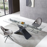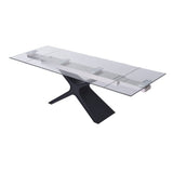 Elevate your dining experience with the Whiteline Modern Living West Dining Table, a stunning blend of sleek design and durable craftsmanship. This table is perfect for modern interiors, offering a sophisticated touch with its clear glass top and black metal legs.