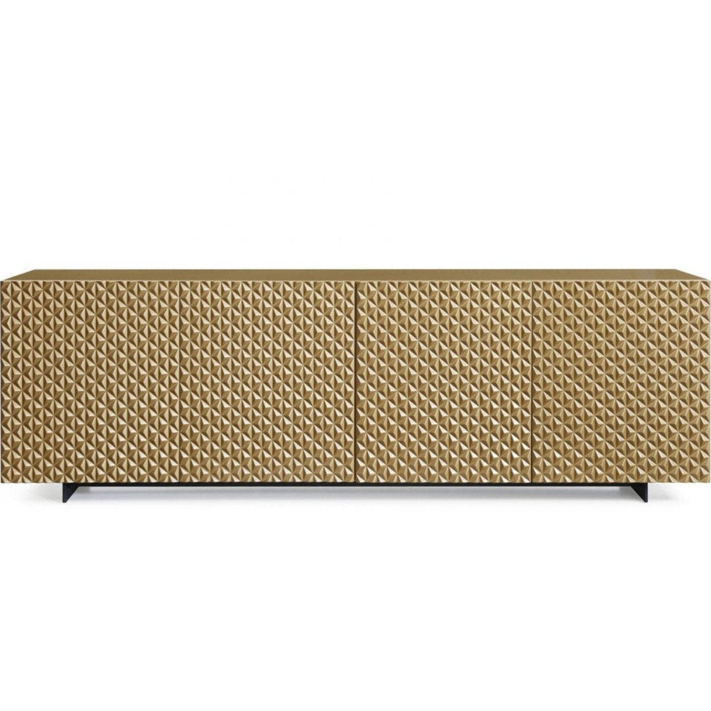 Elevate your dining space with the Whiteline Mods Harper Buffet, a stunning blend of luxury and modern design. This buffet features a striking high gloss gold finish that adds a touch of elegance and sophistication to any room. The unique wave doors not only enhance its visual appeal but also provide practical storage solutions, making this piece both functional and stylish. The black matte metal legs offer a sleek contrast, grounding the design and adding a contemporary edge.
