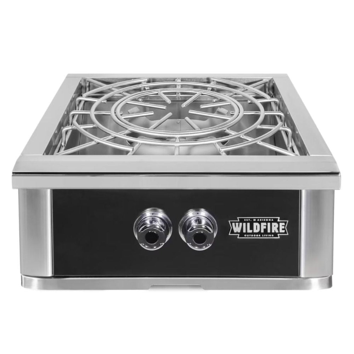 Transform your outdoor culinary experience with the Wildfire Ranch PRO Black Gas Power Burner, a sleek and powerful addition to your outdoor kitchen. Crafted from durable cast stainless steel burners and featuring stainless steel cooking grates, this propane power burner offers superior performance and longevity. Its distinctive black stainless steel design with stylish soft edges enhances the aesthetics of your outdoor space while providing a robust cooking surface for exceptional grilling results.