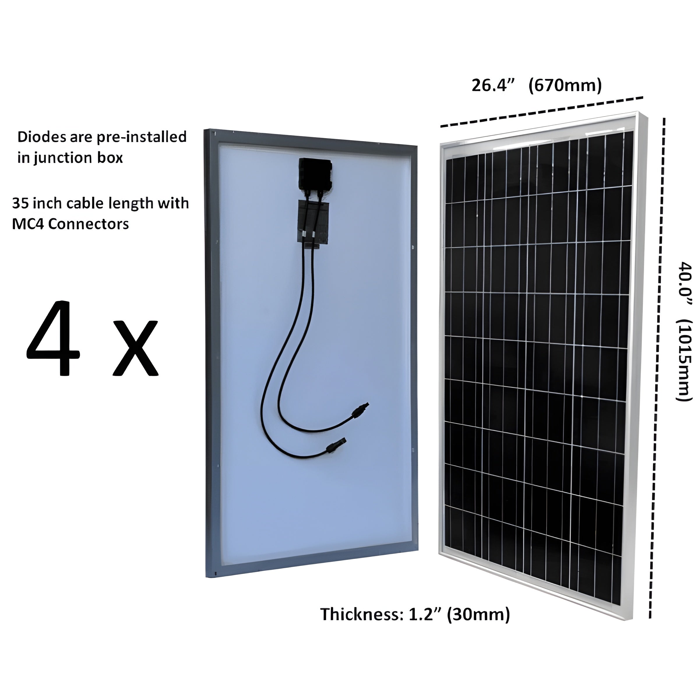 (4 pcs) 100 Watt WindyNation 12 volt Polycrystalline WindyNation Solar Panel