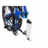 The Baja 48 Volt Lithium Powered Electric Folding Mountain Bicycle is a Lithium Battery powered Electric Bicycle cranking out 500 Watts from the Bafang High Torque Zero Resistance Clutch Motor. This bike features a lightweight, compact lithium LiPo4 48 volt 8 Ah integrated battery pack providing a considerable amount of power greater than our 24 volt or 36-volt models. This bike comes with everything Aluminum - every bolt, every nut, every nipple, every spoke. That means no rust! The 100% hand welded lightweight aluminum frame bicycle has Atlus Shimano 9-Speed Gears & Shifting System, Suntour XCT Front Suspension & KS Rear Shock Suspension, aluminum rims with quick release axle on the front and a water proof quick disconnect on the rear.