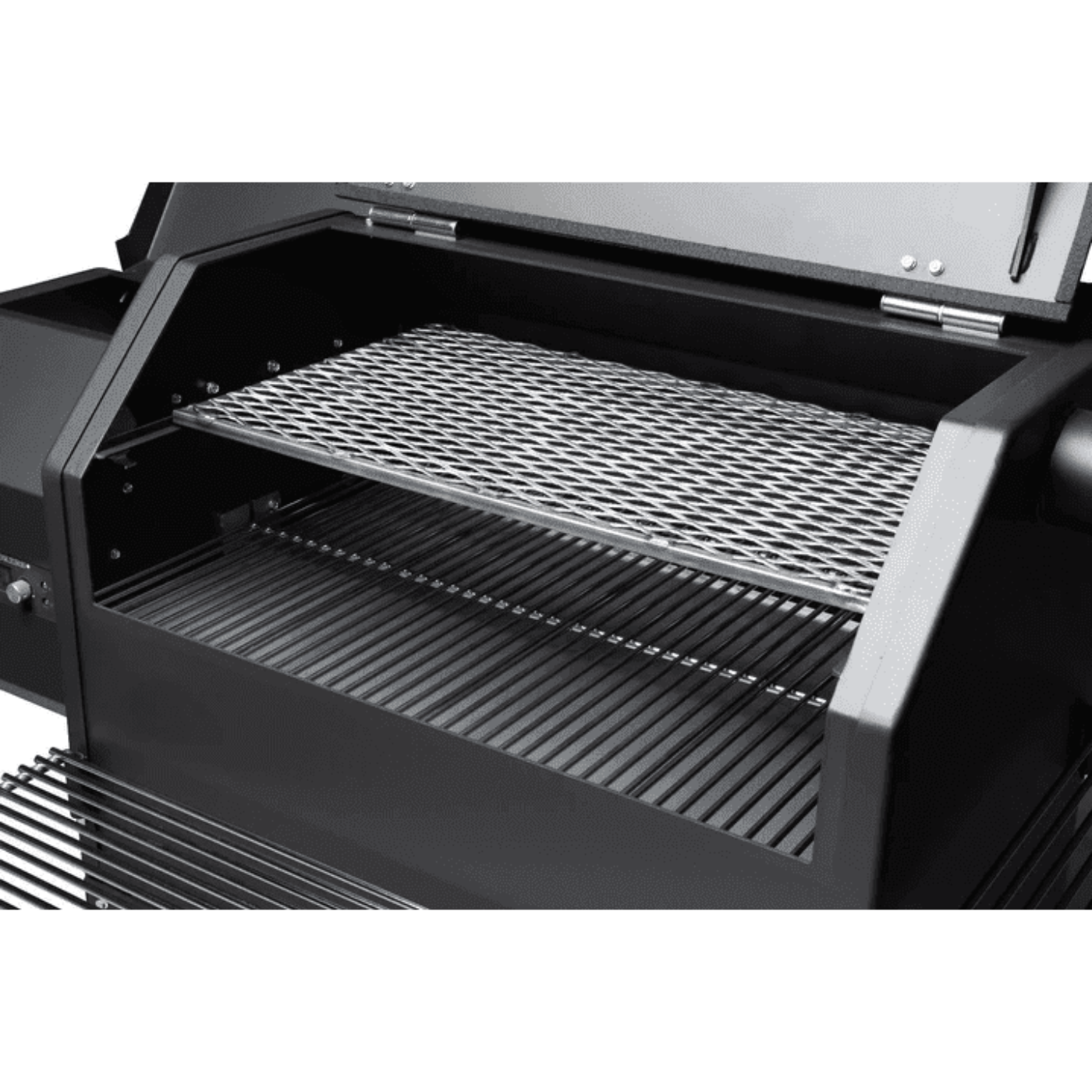Spacious Cooking Area: 1,070 square inches with 2nd level slide-out cooking shelf