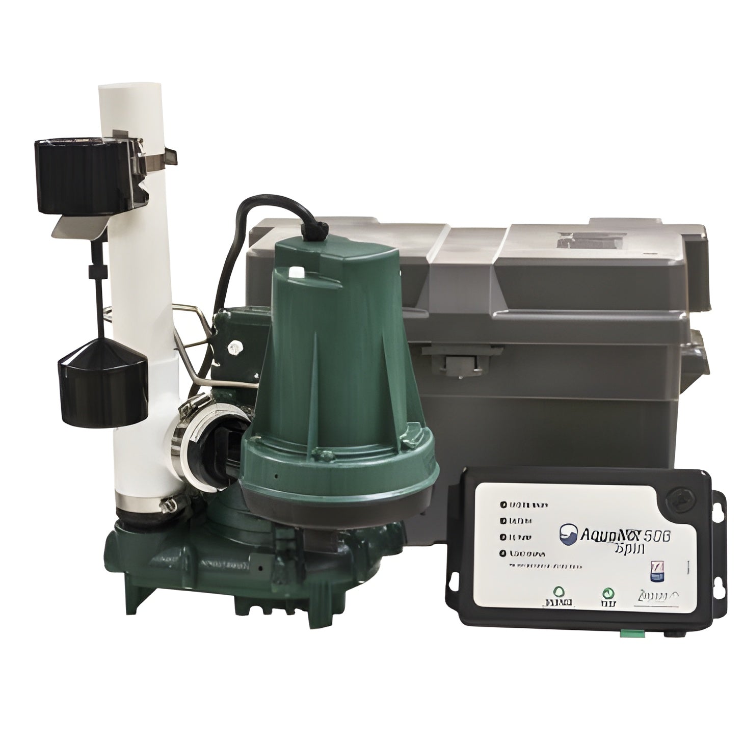 As a self-testing 12-volt backup sump pump system, the Aquanot® Spin 508 maintains a sophisticated controller responsible for charging, offering automatic, supervised switch connections, and running intelligent diagnostics. This cost-effective battery backup solution for your existing sump pump uses an audible alarm and flashing lights to alert homeowners when an issue has occurred.